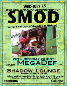 July is jam packed with events. Last week Black Mahal rocked the Thunderbird in Lawrenceville and next week SMOD (featuring the Son of AMADOU ET MARIAM). SMOD will destroy and so will MEGADEF. but first this weekend TOY SELECTAH will be at the VIA space in East Liberty at 6119 Penn Ave on SATURDAY NIGHT (JULY 21).
