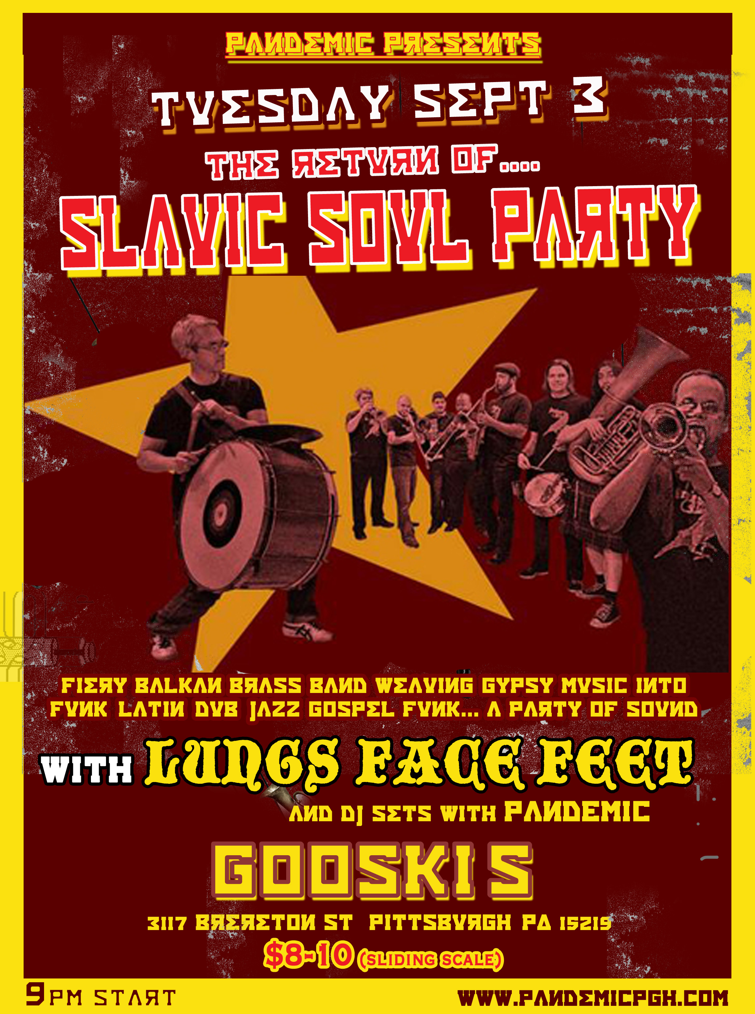 A fiery 9 piece balkan brass band that has set Gooski’s on fire multiple times. It’s been too long since they have been in the burgh. SSP are excited to be back and playing at their favorite little bar in Polish Hill…GOOSKI’s