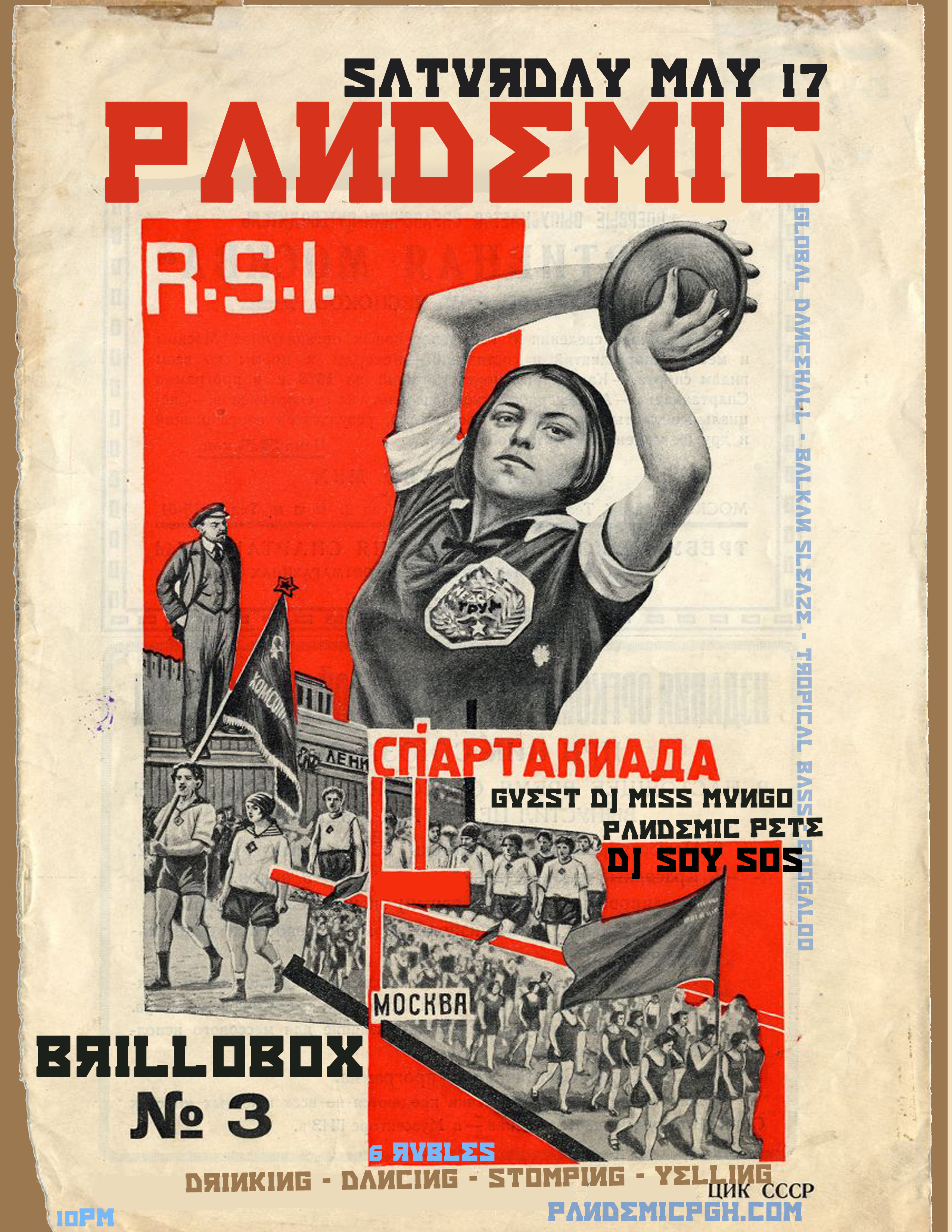Mid Month Mayhem has some fun local guests like DJ SOY SOS playing chopped up tropical jams with his own percussion and samples. As well as DJ MISS MUNGO and her eclectic array of vintage psychedelic boogaloo, turkish funk, and more. with resident PANDEMIC PETE keeping the Bhangra, Balkan, and Chalga flowing thru the party.