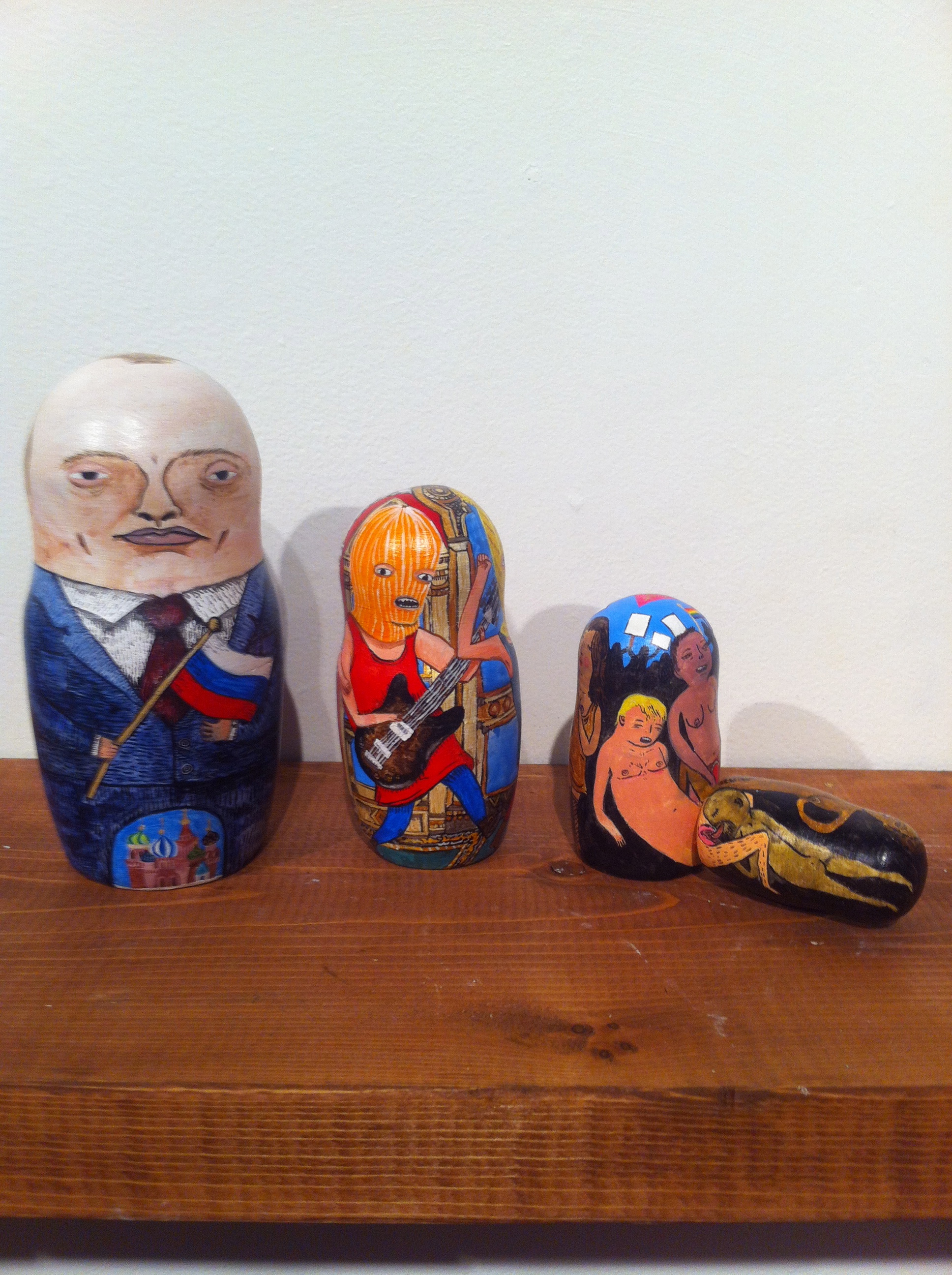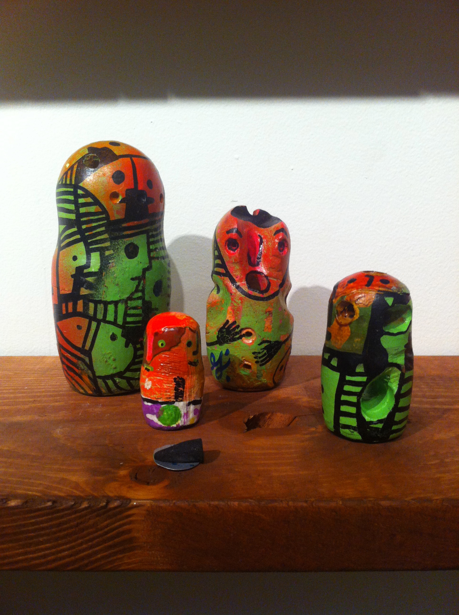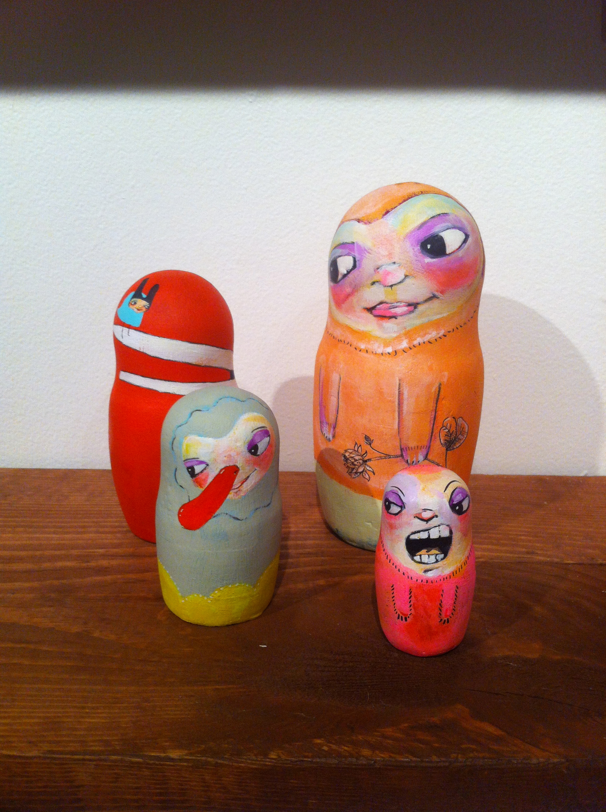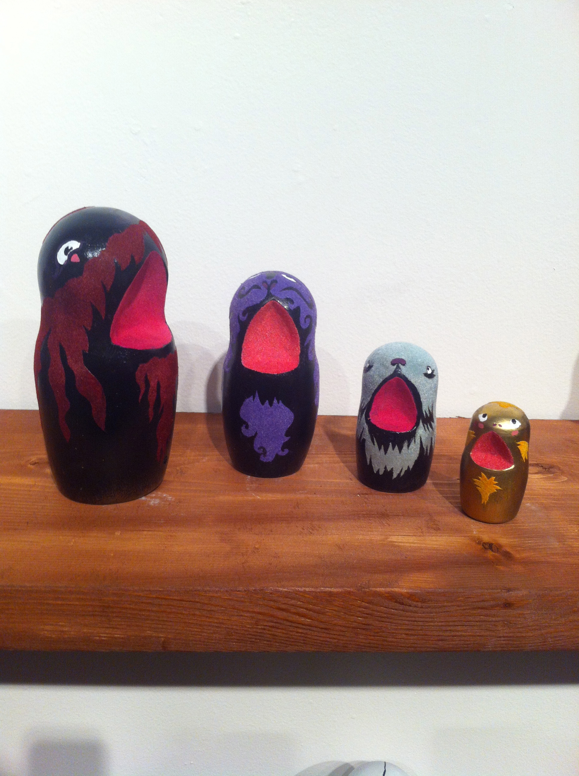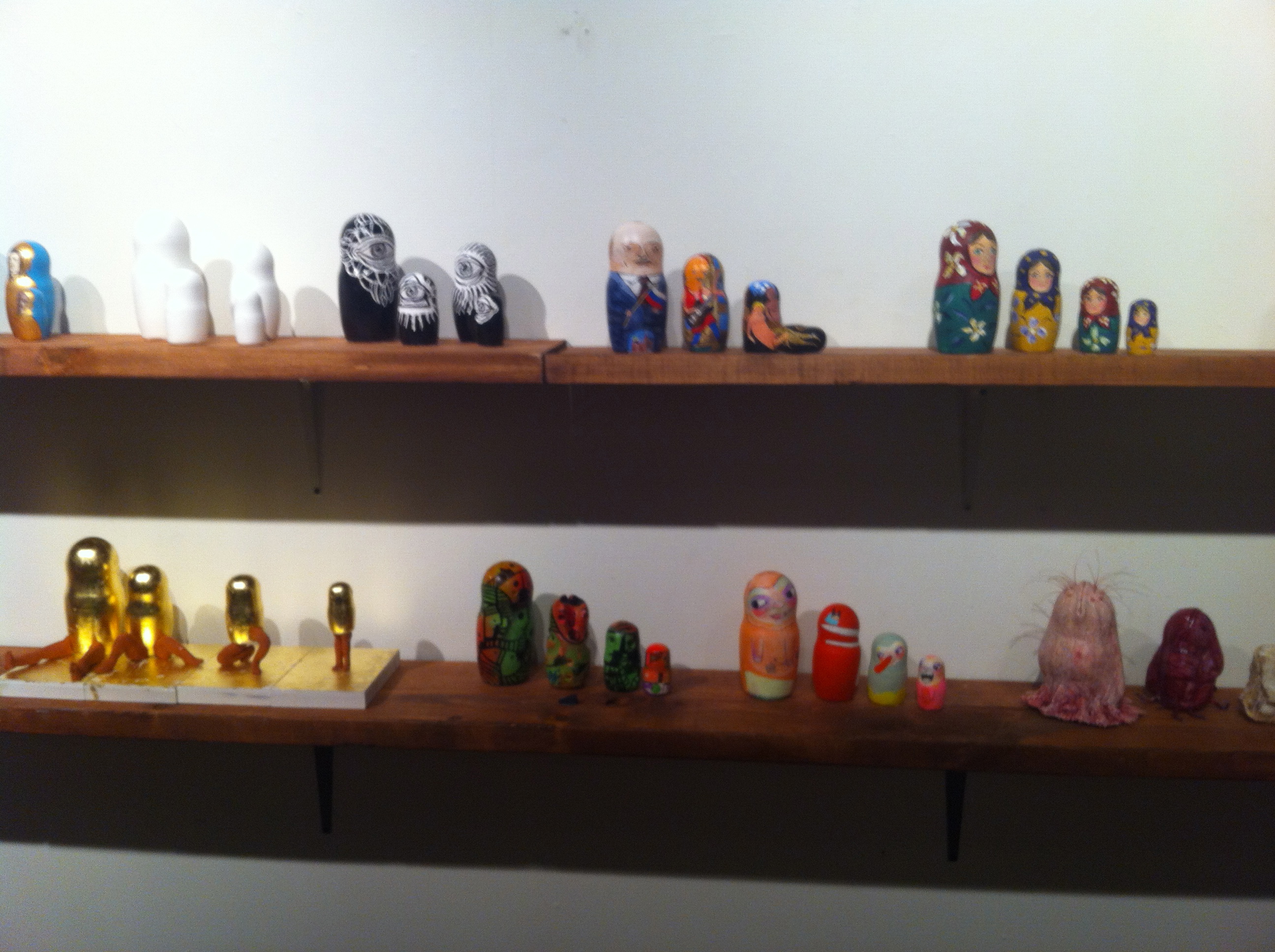As part of our 8 year Anniversary Celebration we put together an art show of Russian Nesting Dolls painted by local artists and auctioned off at Most Wanted Fine Art. The event was held on Friday December 6, 2013. Here are some photos of the dolls. More about the artists to come…