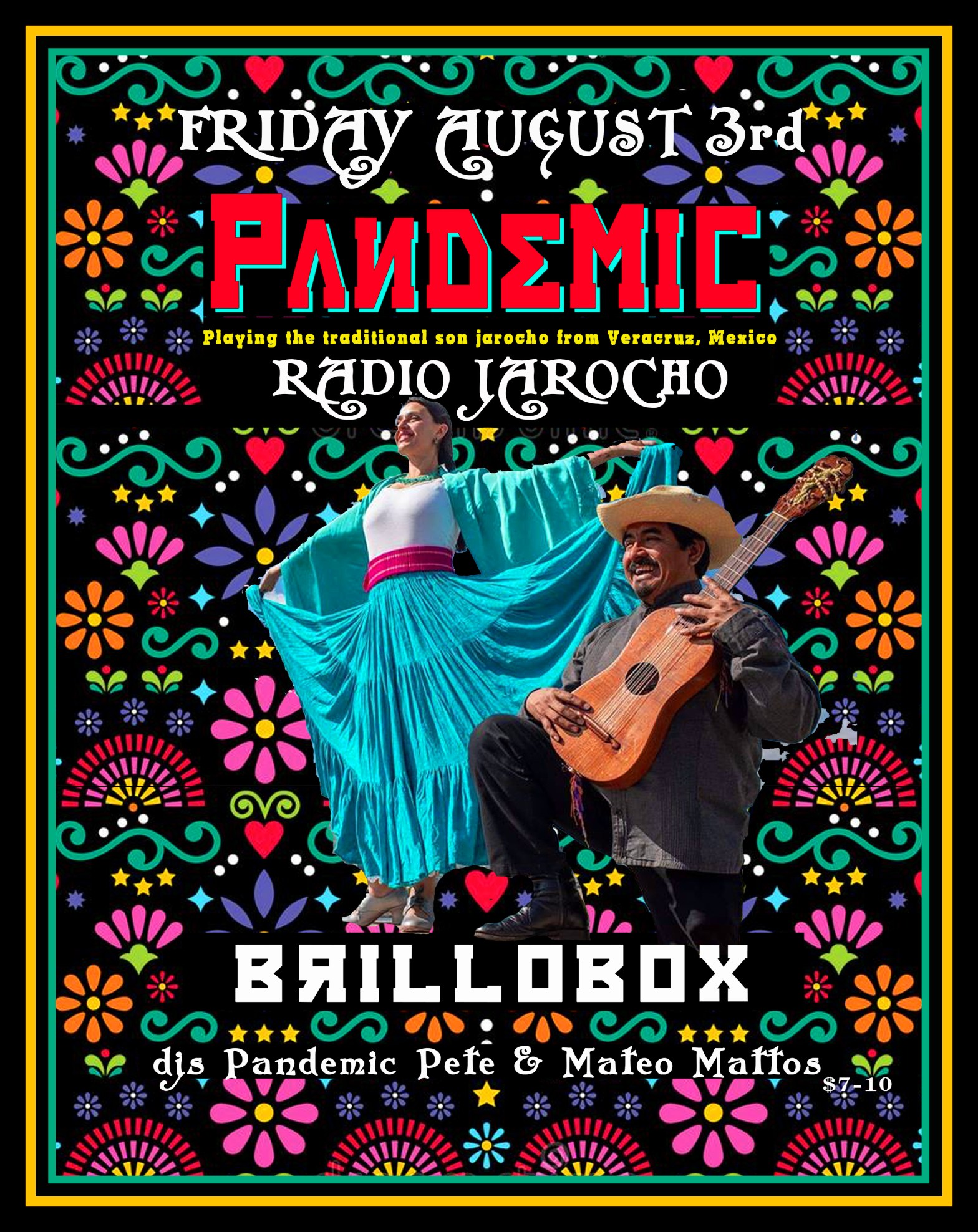 Pandemic is bringing in top notch music from around the world ranging from Balkan brass to traditional Mexican folk music and Afrobeat. Pandemic Pete and DJ SMI hold it down while these live performances take the party to another level. Don’t miss first fridays at Brillobox